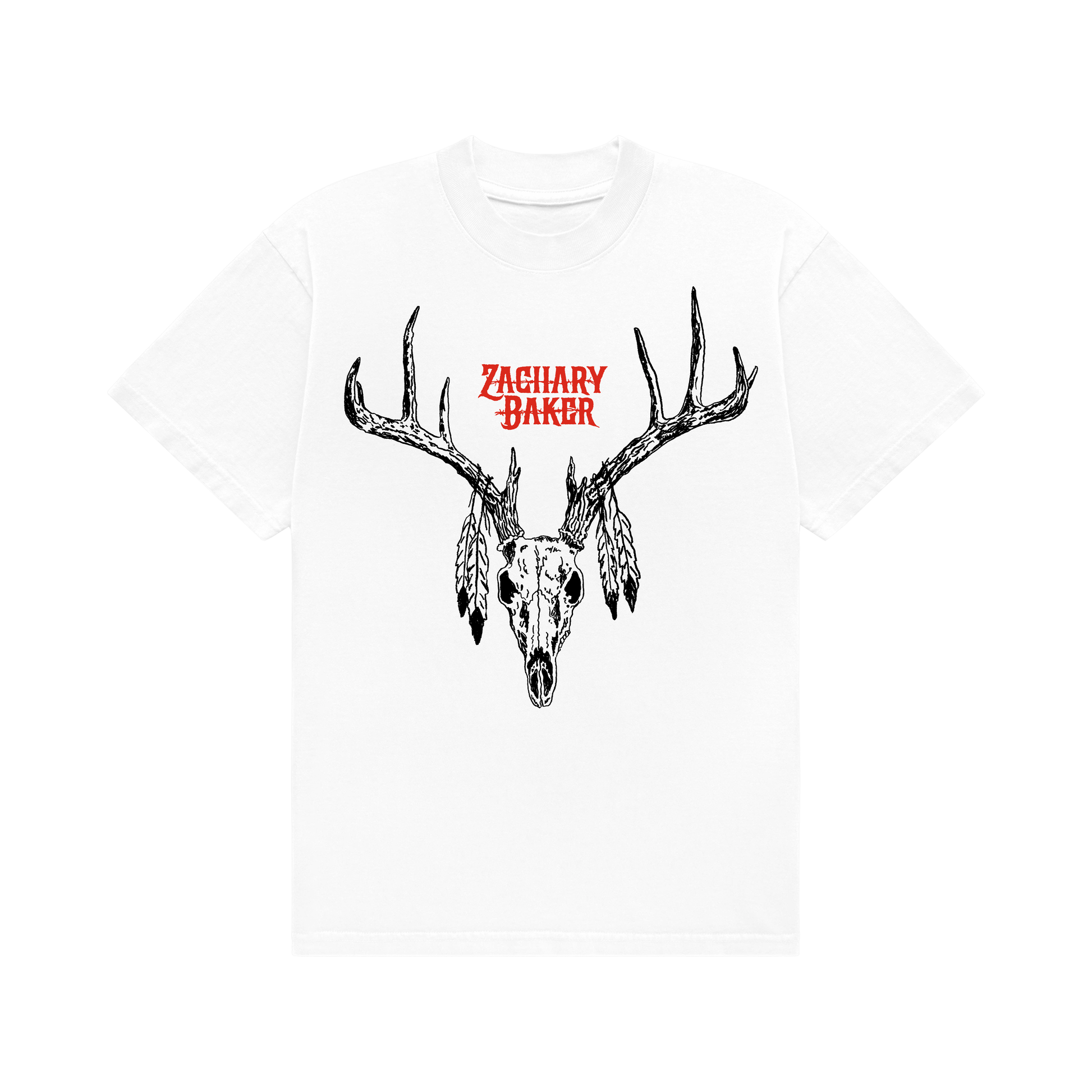 Official Zachary Baker logo tee featuring original artwork by Wes Lang. Printed on a white 5.5 oz, 100% combed ring-spun cotton tee, designed for a soft feel and everyday wear. The graphic blends stark symbolism with a bold, minimal presentation—built to stand on its own.